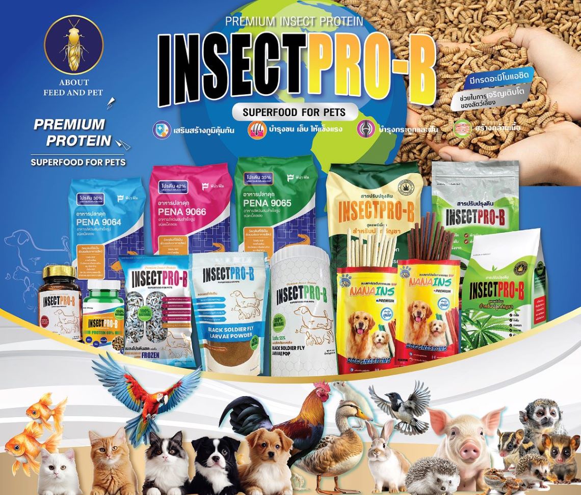 ความโดดเด่นของโปรตีนจากแมลงนี่เองที่จุดประกายให้ คุณอนุวัฒน์ ตั้งสถาพรพันธ์ กรรมการผู้จัดการ บริษัท อเบ้าท์ ฟีด แอนด์ เพ็ท จำกัด สนใจลงทุนในธุรกิจผลิตอาหารโปรตีนจากแมลงในรูปแบบอุตสาหกรรมอาหารโปรตีนคุณภาพสูงครบวงจร โดยเริ่มต้นจากการลงทุนทำฟาร์มเลี้ยงหนอนแมลง (Black Soldier Fly- BSF) ภายใต้ชื่อ บริษัท บีเอสเอฟ ฟาร์ม จำกัด ก่อตั้งโรงงานแปรรูปเป็นอาหารสัตว์สำเร็จรูปคุณภาพสูงสำหรับสัตว์ ABOUT FEED AND PET ที่สามารถผลิตอาหารสัตว์ และปุ๋ยจากมูลของหนอน BSF ขายส่งในรูปแบบ OEM ให้แก่ผู้สนใจสร้างแบรนด์อาหารสัตว์สำเร็จรูป